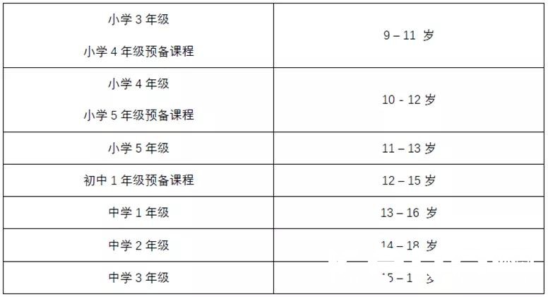 考试年级:小学一年级到中学三年级。